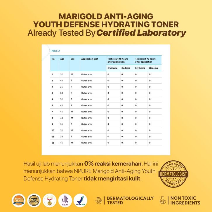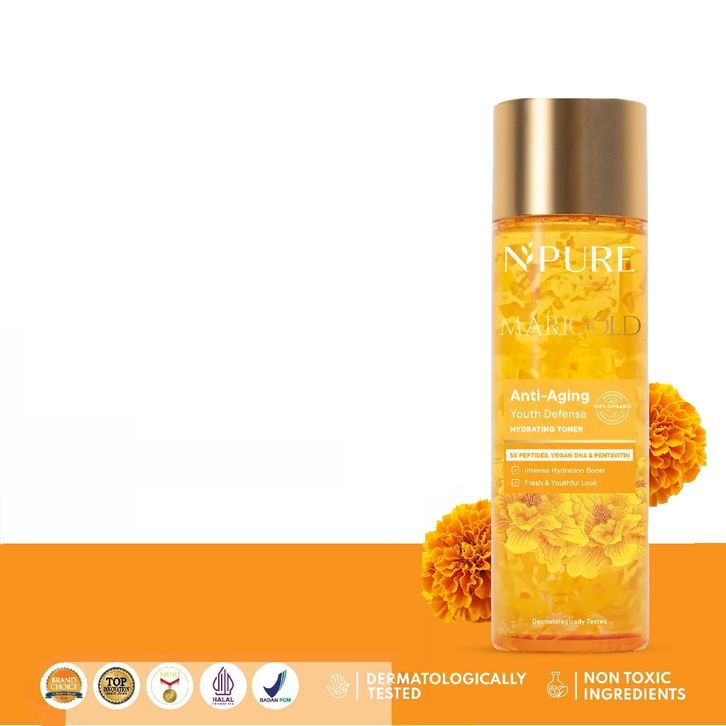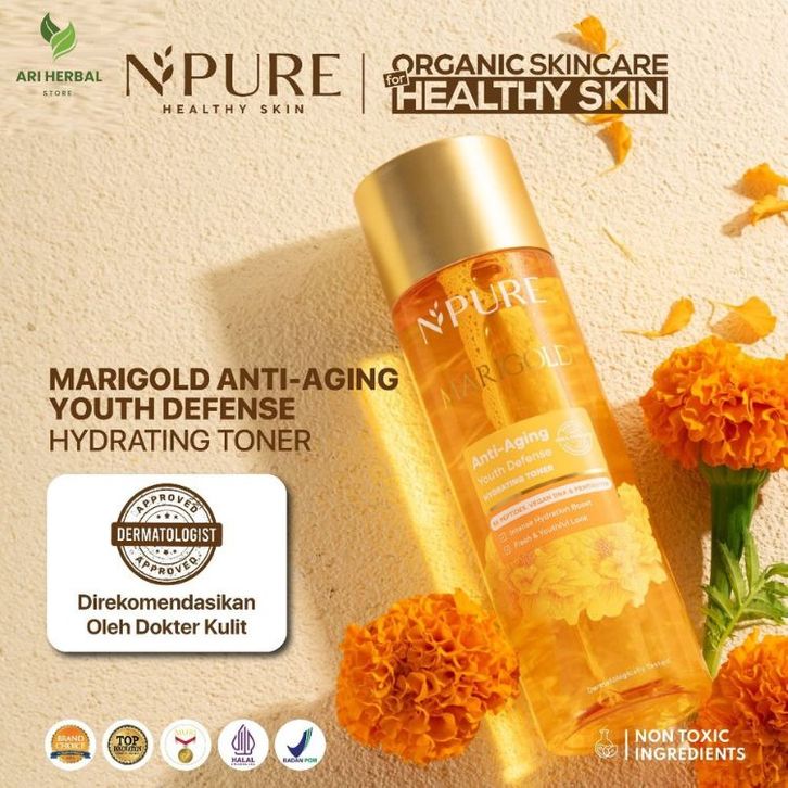 HYDRATING TONER NPURE MARIGOLD ANTI-AGING YOUTH DEFENSE CLEARING PETAL TONER GENTLE EKSFOLIASI WAJAH TERLARIS