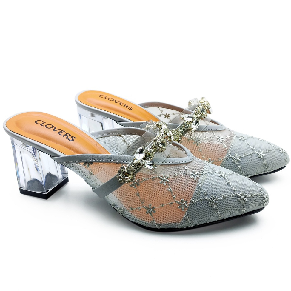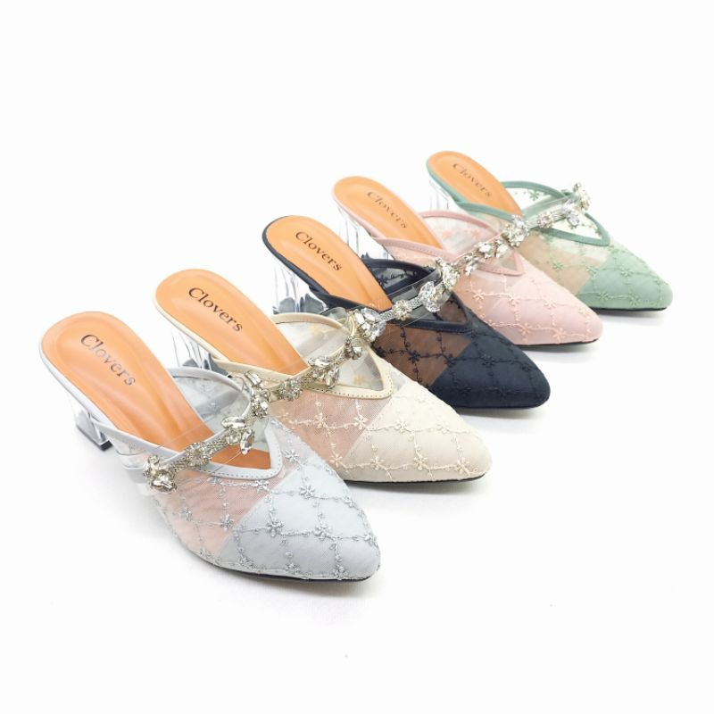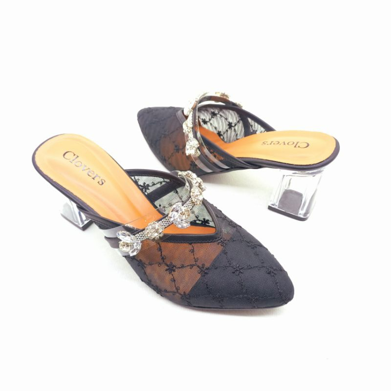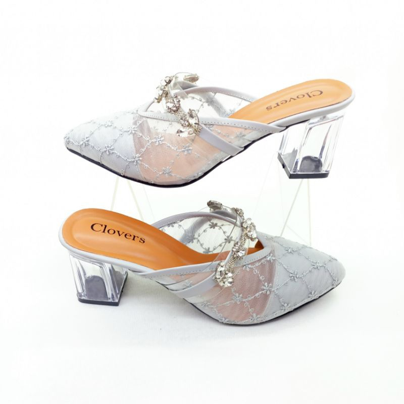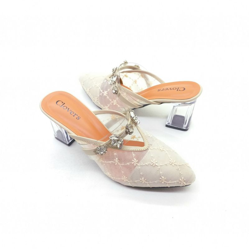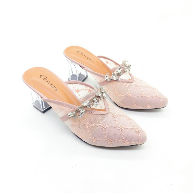 Sandal Formal Kekinian Wanita Brukat Pest4 Wedding Pernikahan Tum1t Hak Kaca 7 Cm