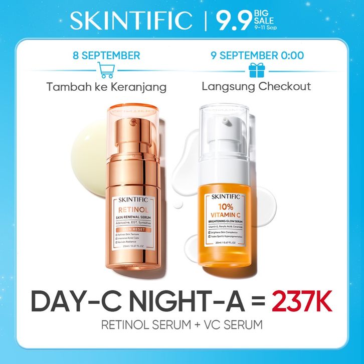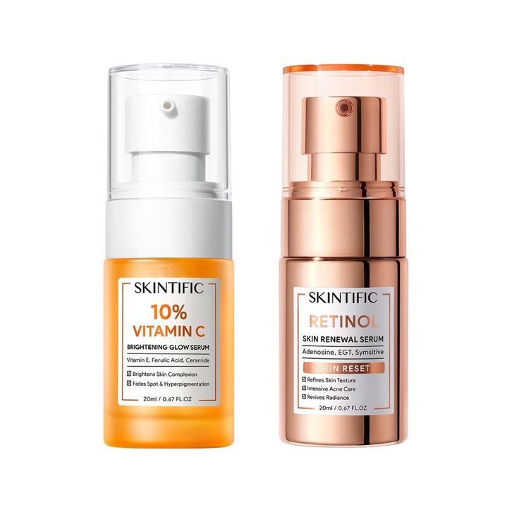 SKINTIFIC - Day-C Night-A 2pcs Paket Skincare Set - 10 Vitamin C Brightening Glow Serum 20ml + Retinol Skin Renewal Ser