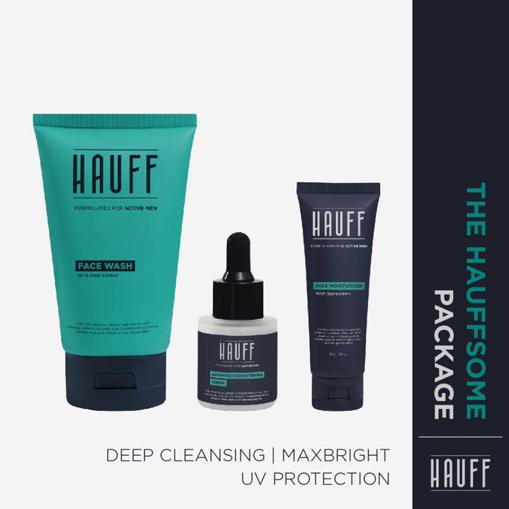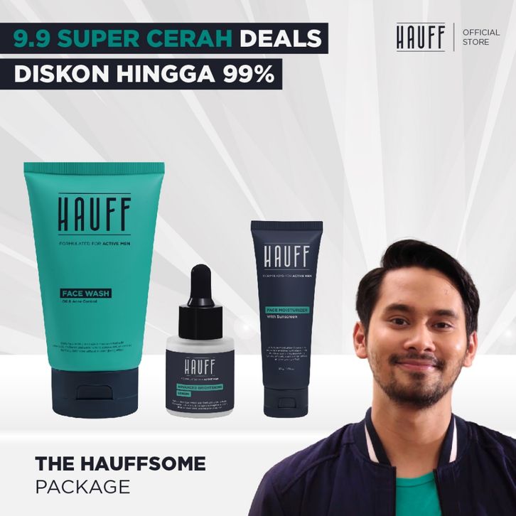 The Hauffsome Package Face Wash + Serum + Moisturizer with Sunscreen | Paket Lengkap Skincare Pria / Cowok | Mencerahka