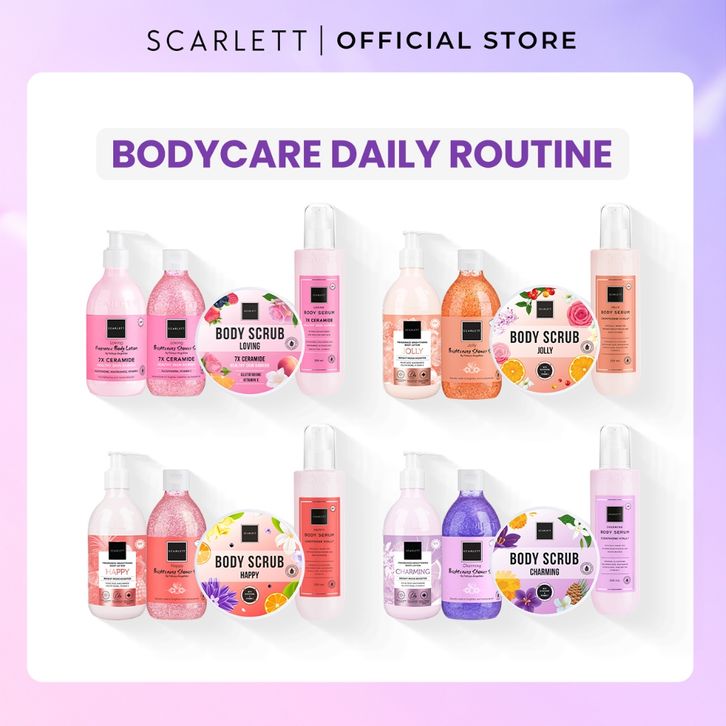 Scarlett Whitening 4pcs Bodycare Daily Routine Body Lotion + Body Serum + Shower Scrub + Body Scrub