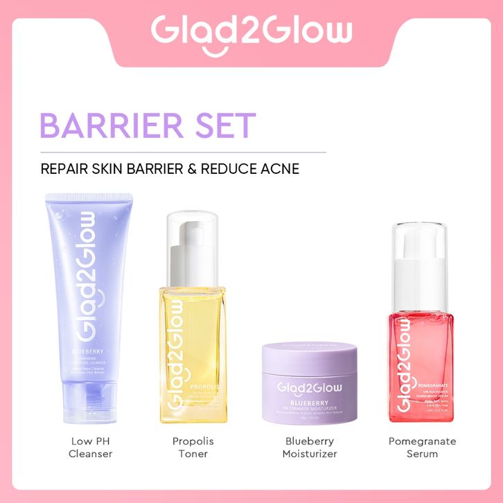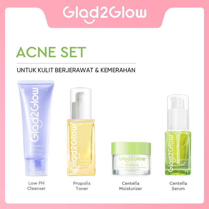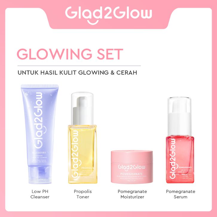 Pre Order 30 Hari Glad2Glow Paket Skincare Set 4pcs Set Low pH Gel Cleanser + Toner + Serum + Moisturizer Serum Wajah P