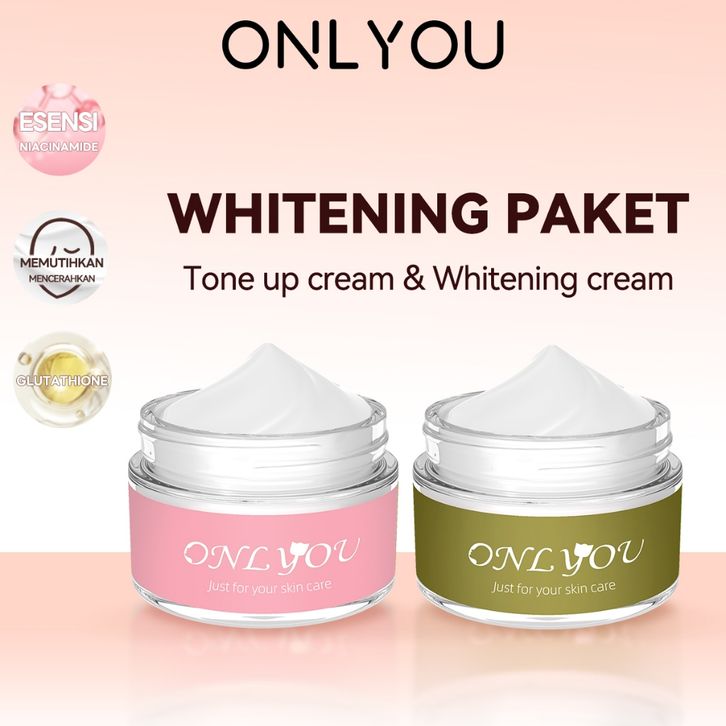 ONLYOU Whitening PAKET Whitening moisturizer cream wajah 30G & Bright Stuff Tone Up Cream Menyamarkan Pori-pori tonin
