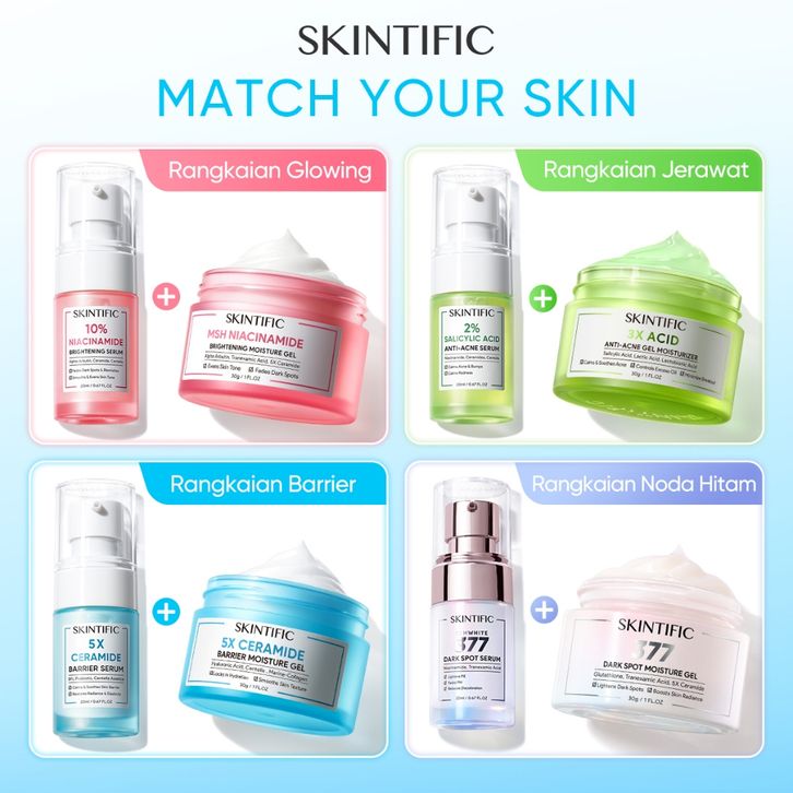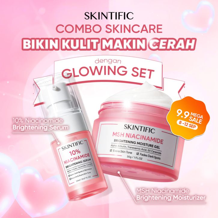 HOT 2PCS Set SKINTIFIC Serum + Moisturizer Set Brightening Krim & Serum Set+ MSH Niacinamide Moisture Gel 30g Moisturiz