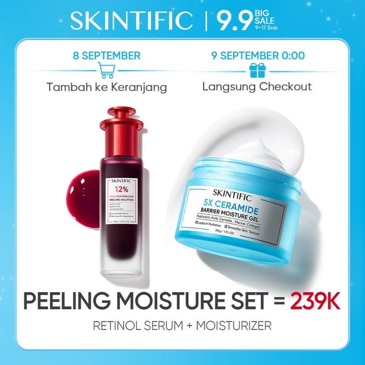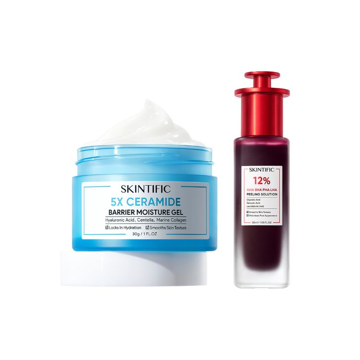 New Launch SKINTIFIC - 2pcs Paket-Skincare Set | 12 Acid Peeling Solution Serum 30ml + 5X Ceramide Barrier Moisturizer