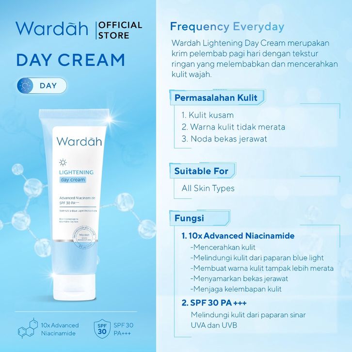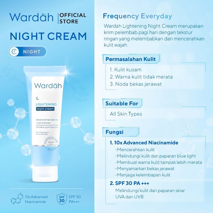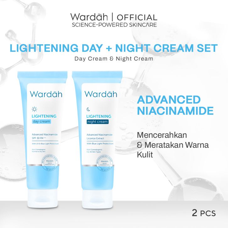 Wardah Lightening Paket Day + Night Cream 20 ml - Skincare dengan Advanced Niacinamine - Glowing Mencerahkan dan Menyam