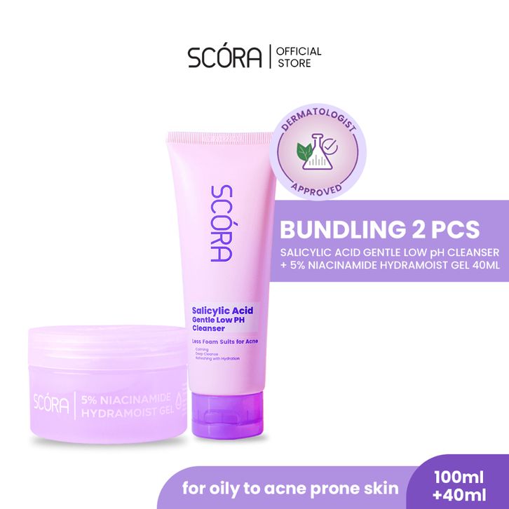 PRE ORDER 7 HARI SCORA 5 Niacinamide Hydramoist Gel 40ml + SCORA 1 Salicylic Acid Gentle Low pH Cleanser Bundling 2 Pcs