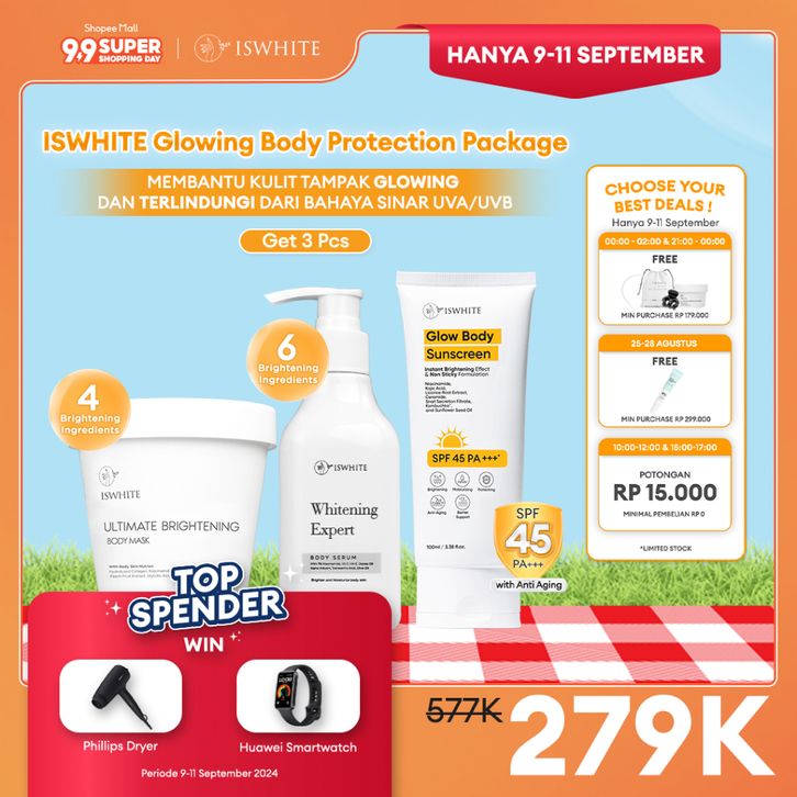 ISWHITE Glowing Body Protection Package | Paket Pencerah + Perlindungan Kulit dari UVA UVB | Ampuh Mencerahkan Kulit Le