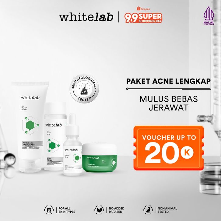Whitelab 4pcs Paket Acne - Facial Wash, Toner, Serum, Moisturizer Paket Skincare