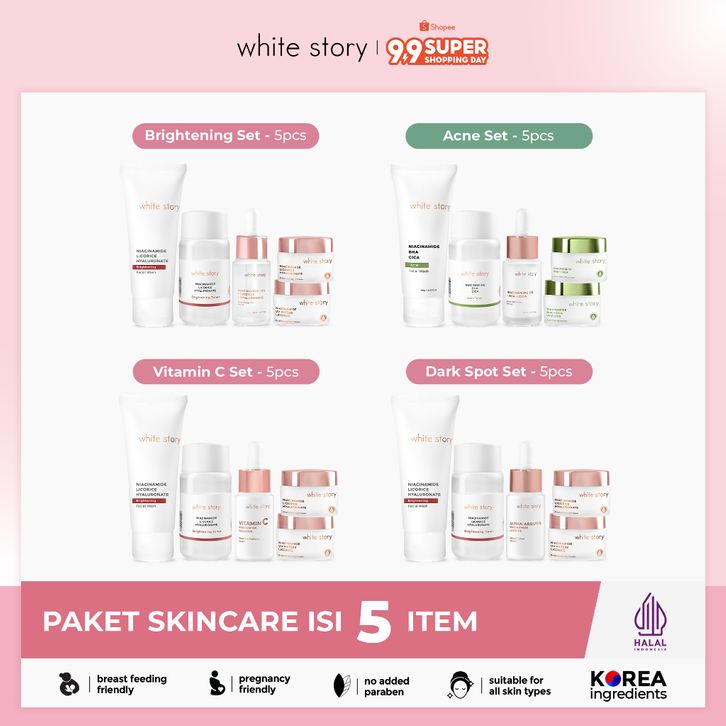 5in1 White Story Best-Selling Package - Paket Wajah Brightening, Acne, Dark Spot, Vitamin C