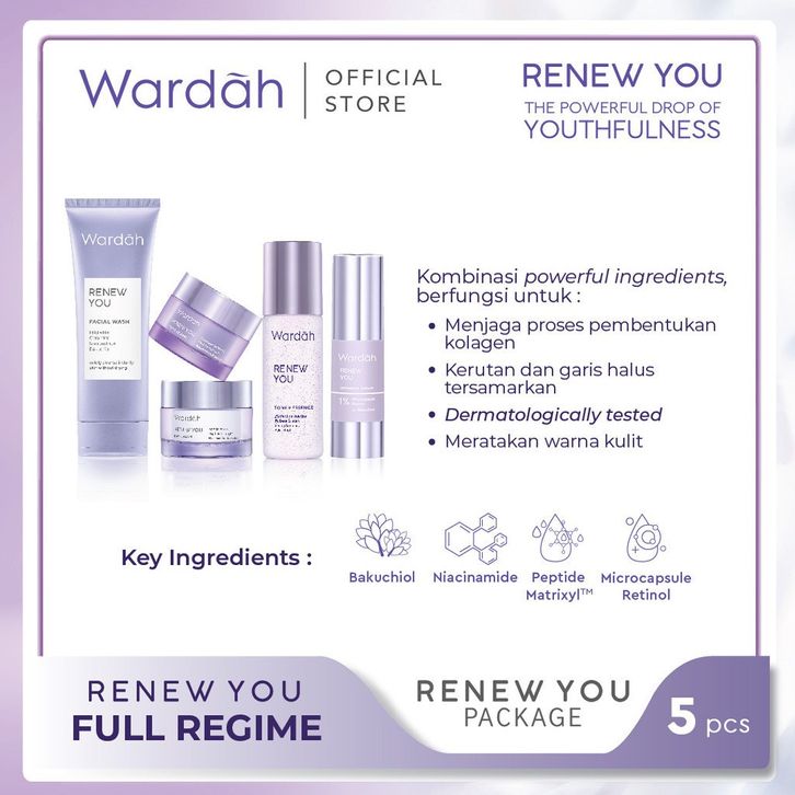 Wardah Renew You Paket Lengkap Full Regime Serum, Night Cream, Essence, Day Cream, Facial Wash