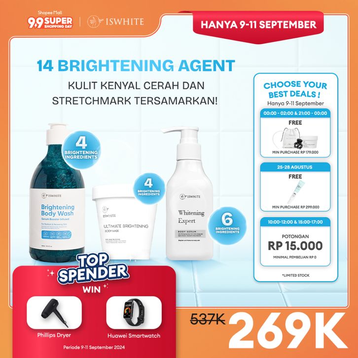 ISWHITE Bodycare Glowing Level Up - Paket Perawatan Tubuh Menyamarkan Noda Hitam dan Hiperpigmentasi - Sabun Mandi Cair