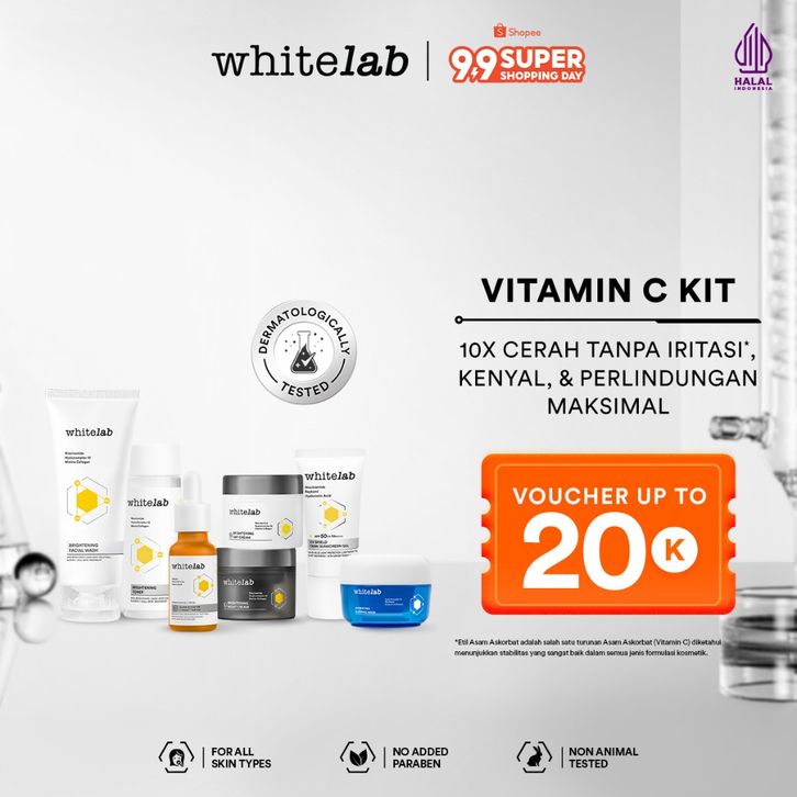 Whitelab 7pcs Brightening Paket Wajah - Facial Wash, Toner, Serum, Moisturizer, Sunscreen, Sleeping Mask Paket Skincare