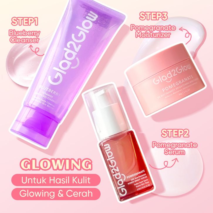 Pre order SPECIAL BUNDLE 3in1 Glad2Glow 3pcs Paket Skincare Moisturizer Face Wash Serum Niacinamide Glowing Set /Acne K