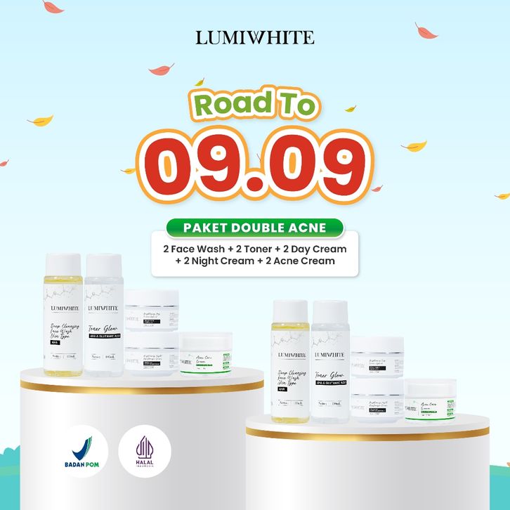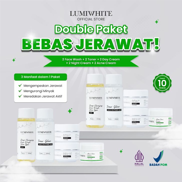 2 PAKET LUMIWHITE Acne Care Paket Lengkap facewash + toner + day cream + night cream + acne care cream