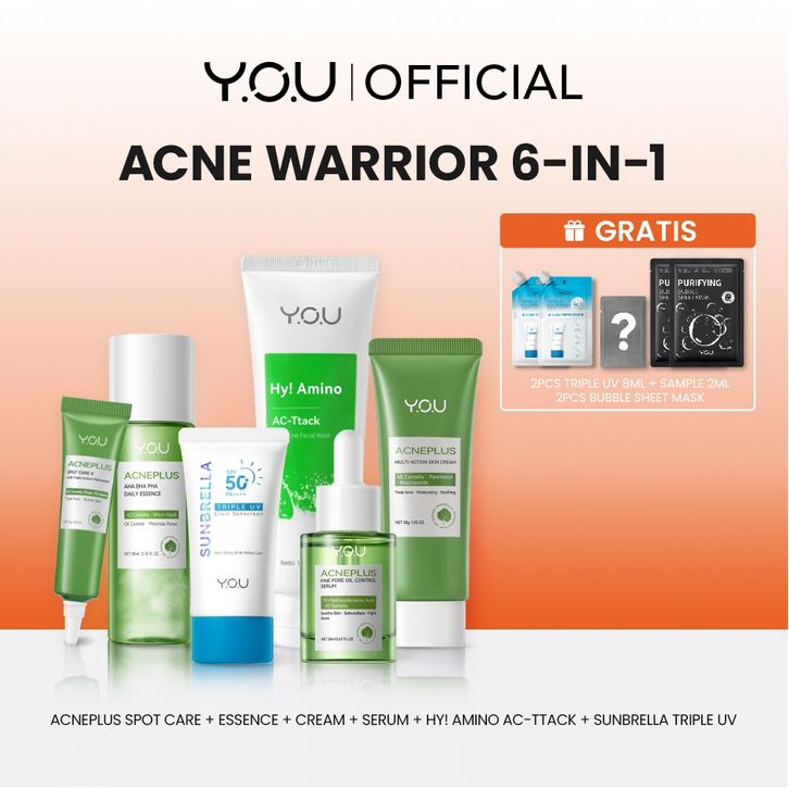 Acne Warrior 6-in-1 Bundle | AcnePlus Spot Care, Toner, Multi-Action Cream, Serum, Hy. Amino AC-Ttack Anti-Acne Facial