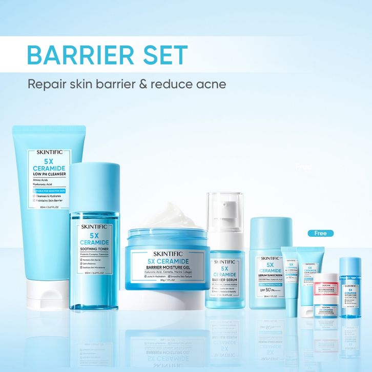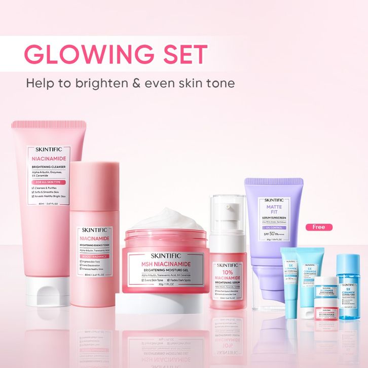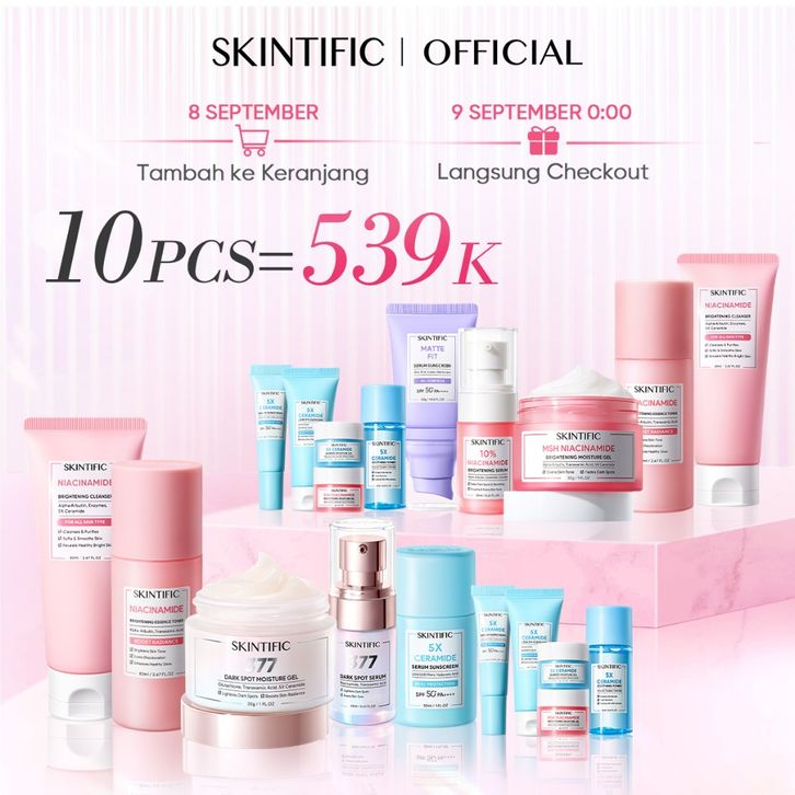 OFFICIAL 10PCS SKINCARE SET SKINTIFIC 10PCS Paket | Sunscreen + MSH Niacinamide Moisturizer Gel + Low pH Cleanser + Exf