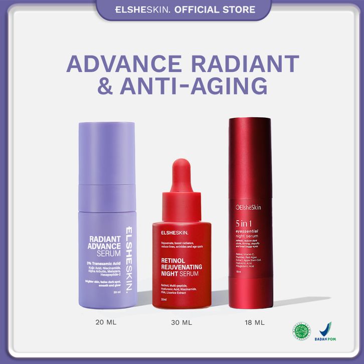 PAKET 3 SERUM 15ml Elsheskin Skincare Serum, Moisturizer for Advanced Brightening, Moisturizing, Calming, Hydrating, An