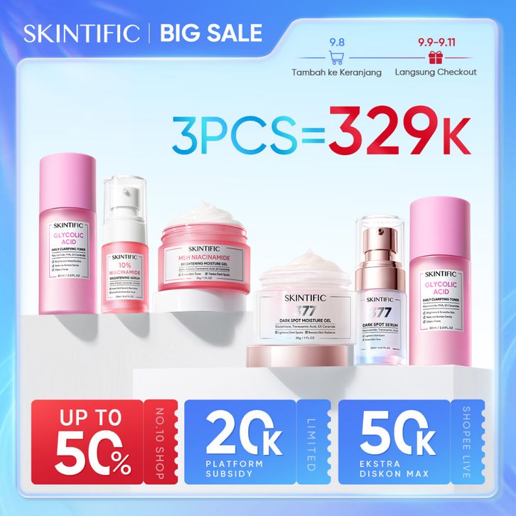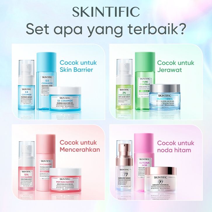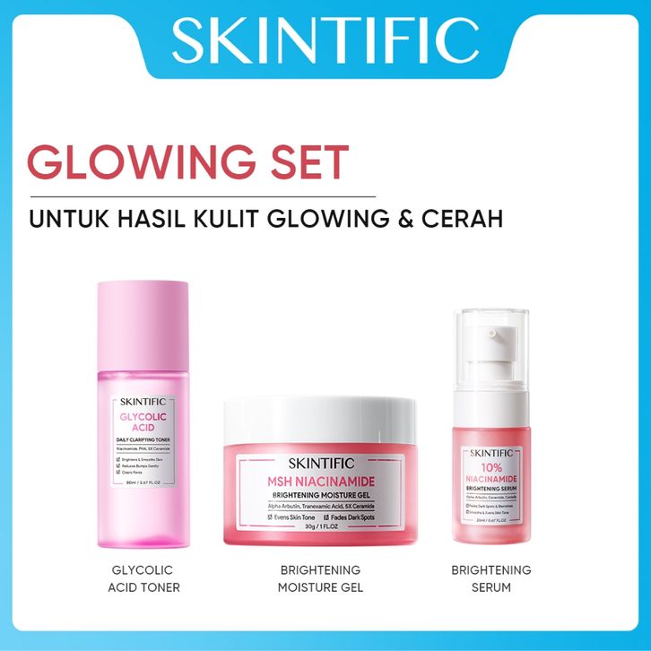 3PCS Paket SKINTIFIC Skincare Set-Toner + Serum + Moisturizer Gel/Day Night Cream + Makeup Removers | Acner Glowing B