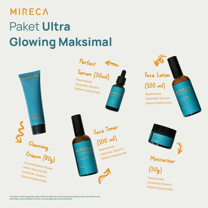 Mireca Paket Skincare Paket isi 5 item | 5 kali lebih efektif untuk mencerahkan | mengatasi jerawat serta flek hitam |
