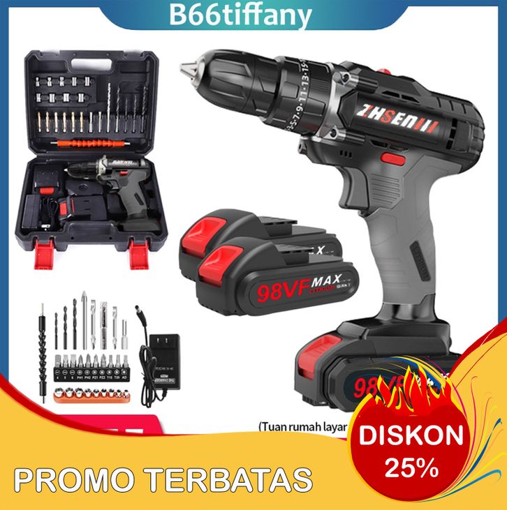 Bor Baterai Bor Listrik Bor Tanpa kabel 98V Set Lengkap Mata Bor Cordless Drill Full Set Of Drill Bits Bor Mesin Elektri