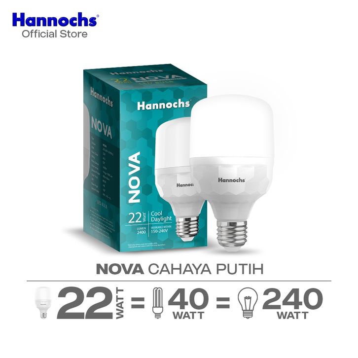 LAMPU BOHLAM LED NOVA 22W CAHAYA PUTIH HANNOCHS (MCUCI)