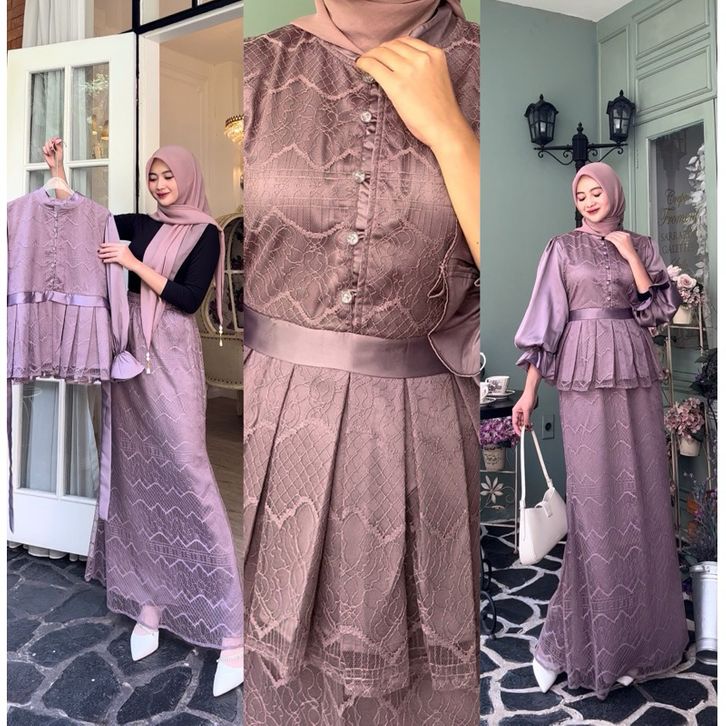 Gamis Wanita Terbaru 2026 One Set Brukat Premium Remaja Dewasa Terkini Dress Fashion Pesta Kondangan Setelan Rok Jumbo