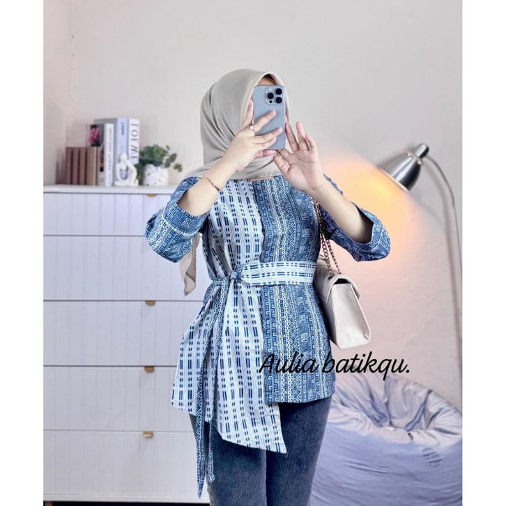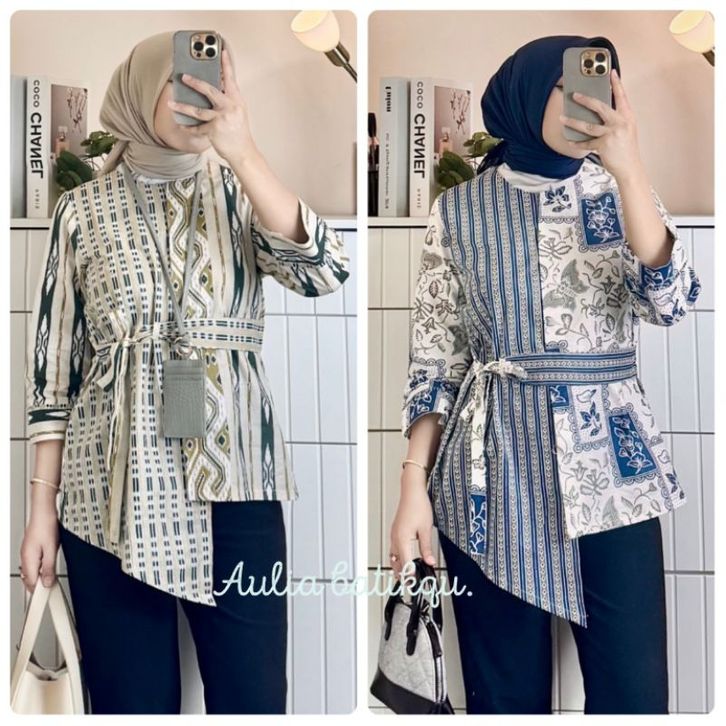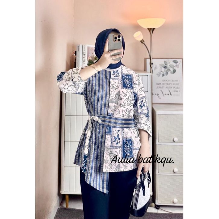 Batik Wanita Modern Kerja Lengan Panjang Batik Monalisa Genes M L XL
