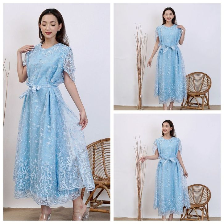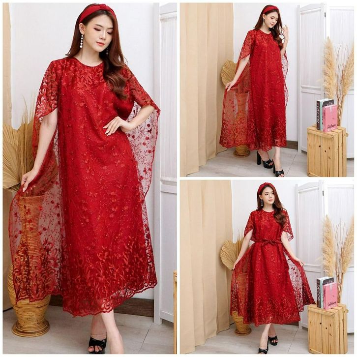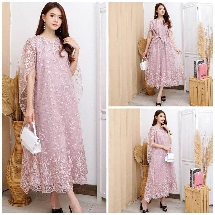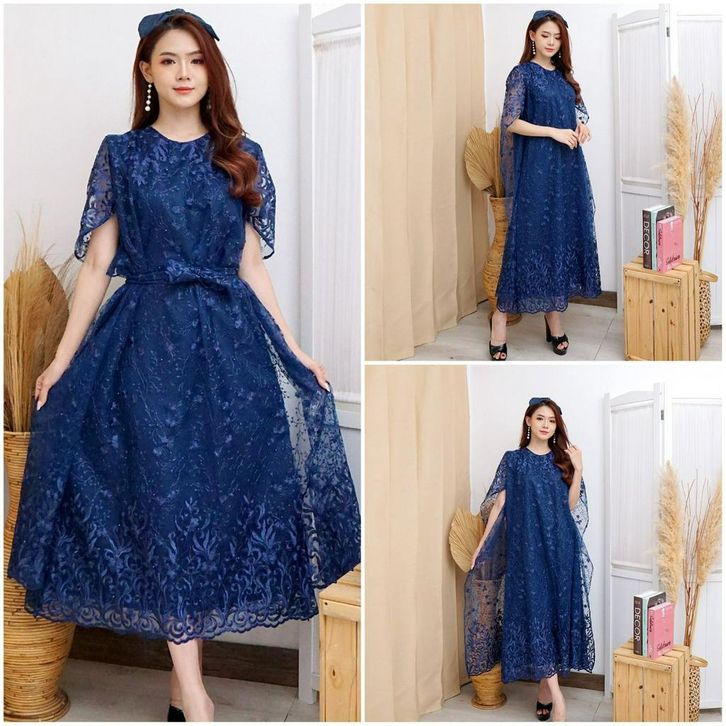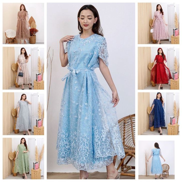 Dress Wanita Kekinian Long Dres Brukat Tille Bordir Brokat Kondangan Mutiara Gliter Gaun Pesta