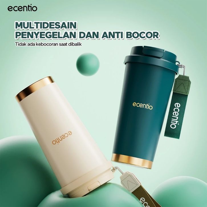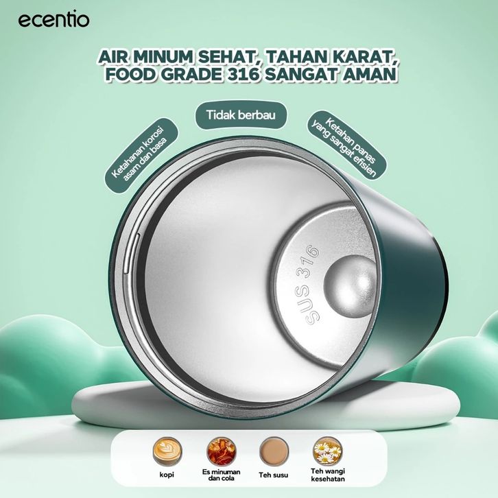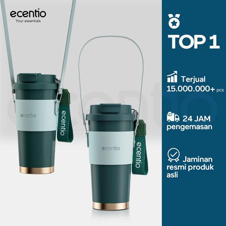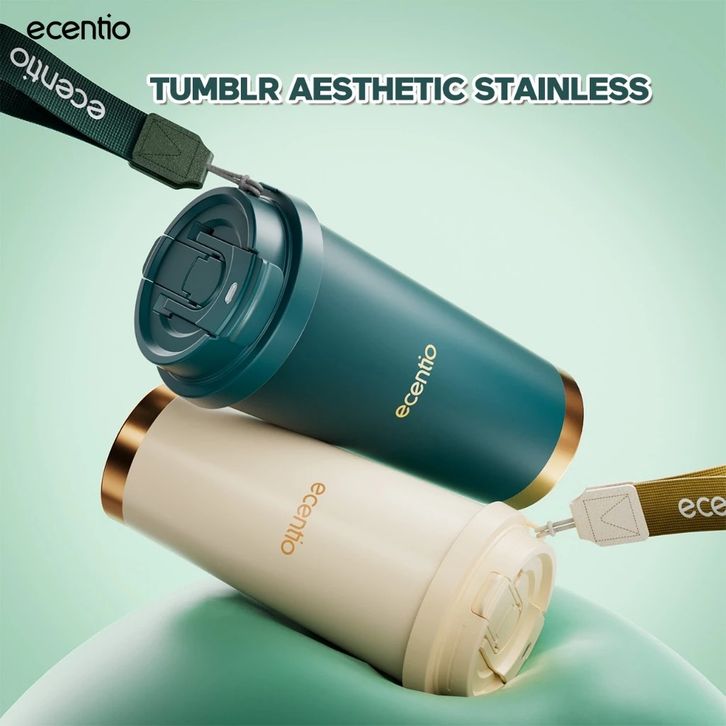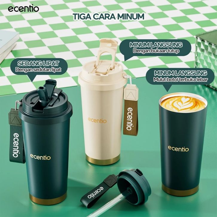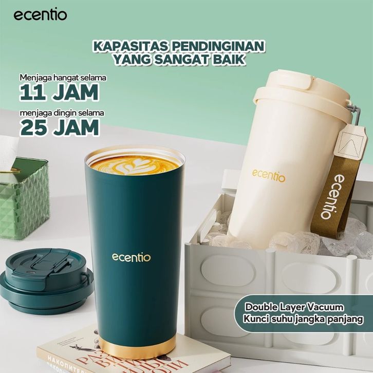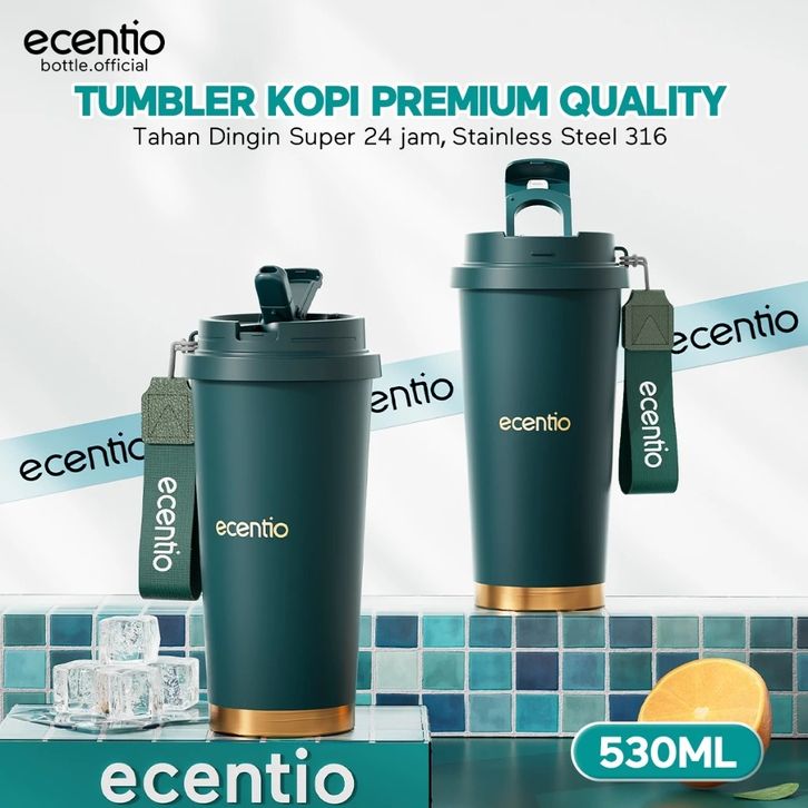 ecentio Tumbler Kopi Kualitas Premium 530ml Vakum Terisolasi Stainless 316 Tahan Panas Dingin 25 jam Dengan Sedotan — Ja