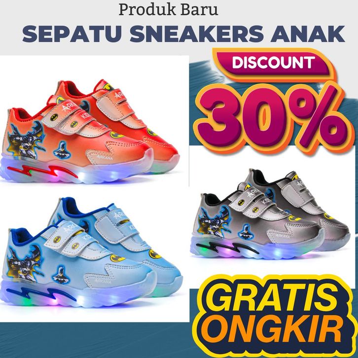 GRATIS ONGKIR Sepatu Sneakers LED Anak Laki-laki Model Karakter Batman TERBARU 2025 TERLARIS