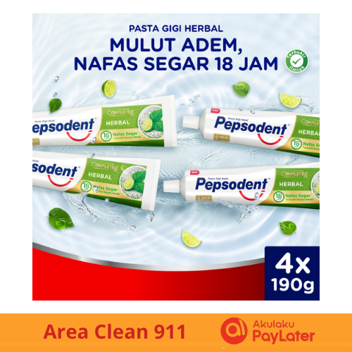Multipack (Isi 4) Pasta Gigi Pepsodent Complete 8 Herbal 190g x 4
