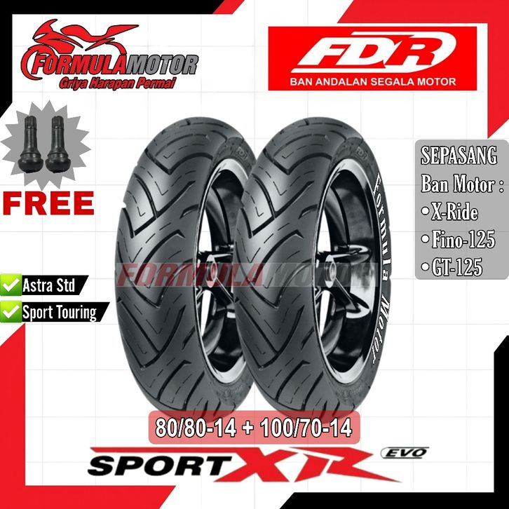 80/80-14 + 100/70-14 FDR Sport XR Evo Ring 14 Tubeless (Sport Touring) Sepasang Ban Motor X-Ride, GT-125, Fino-125/Grand