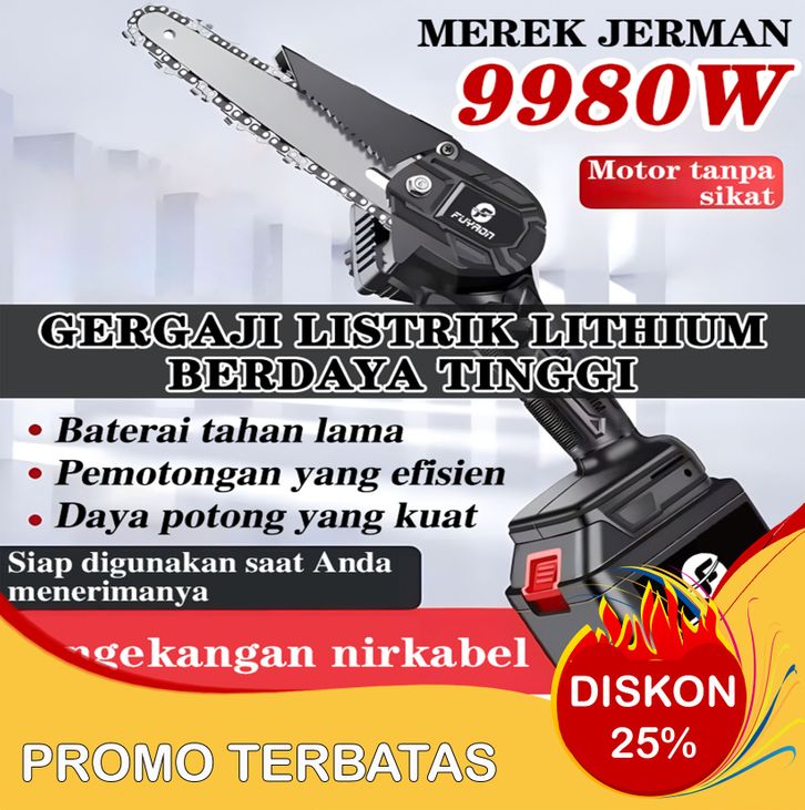 FUYAON Mesin Chainsaw 6 Inch Cordless Chainsaw 36V Gergaji Baterai Gergaji Rantai Elektrik Mini 2 baterai Gergaji Listri