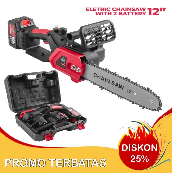 Allefix Chainsaw Cordless Gergaji Rantai Elektrik Mini 12 Inch 2 Baterai 48V -6643