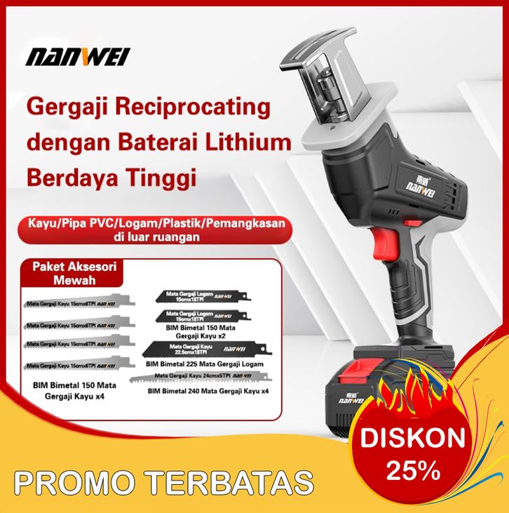 Cordless reciprocating saw/Gergaji Elektrik Portable Genggam Lithium Charger gergaji mesin/Mesin Potong