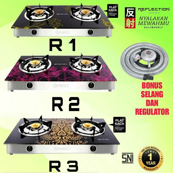 Niko reflection, R1 / R2 / R3 / R4 - Kompor Gas Kaca, 2 Tungku Kaca