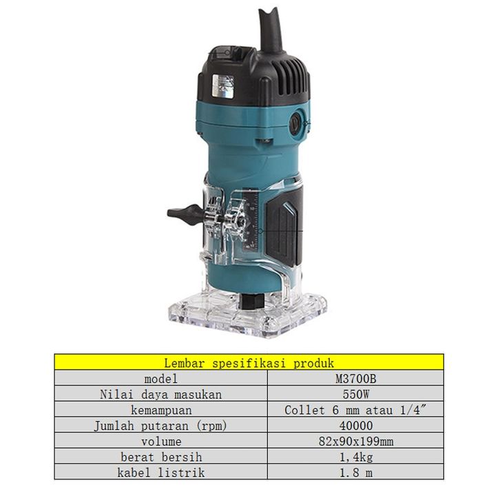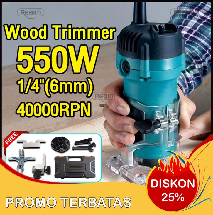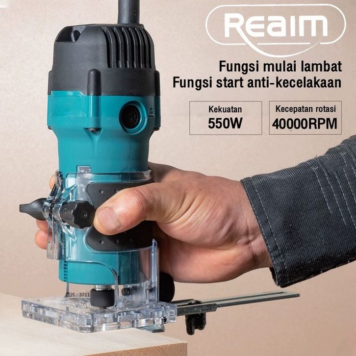 Reaim Wood Trimmer 550W 1/4" 6 MM Mesin Profil Router Trimmer Kayu - Reaim XBJ001