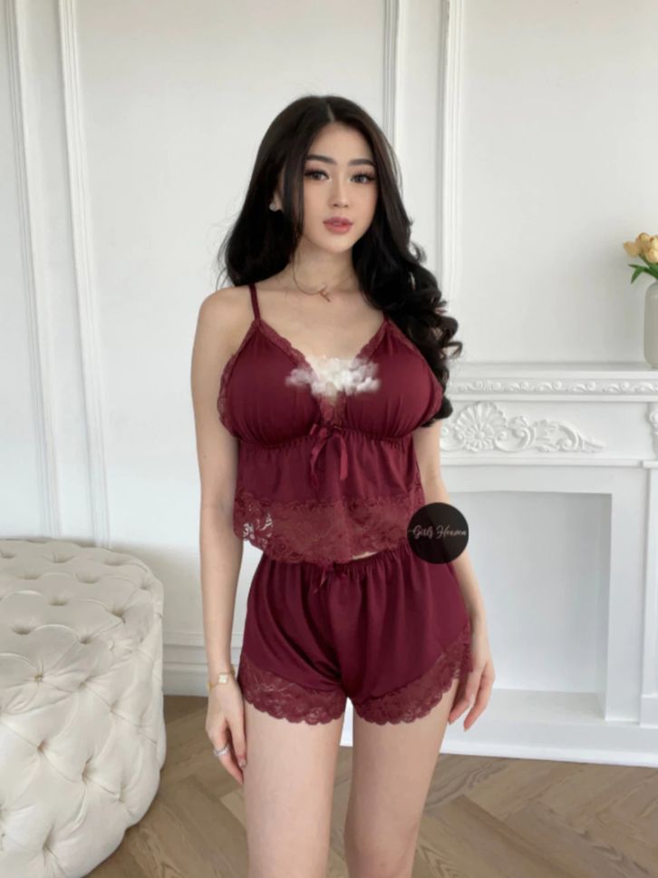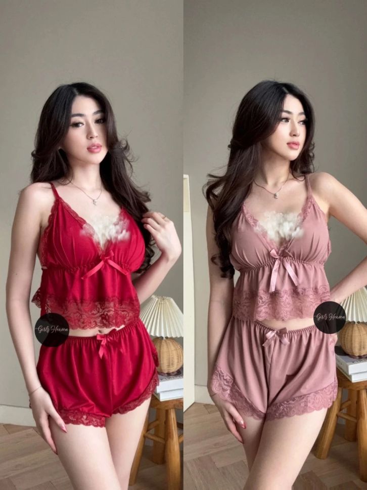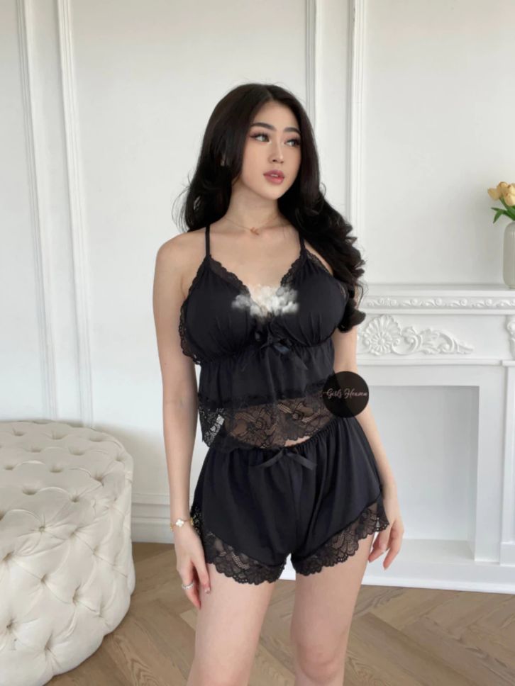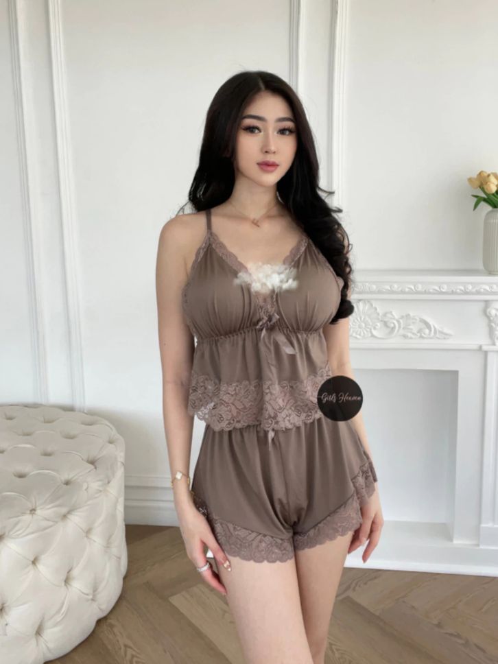 Sleepwear Tanktop Celana Pendek Tali Spageti Tanpa Lengan Renda Tipsi 062 Terbaru