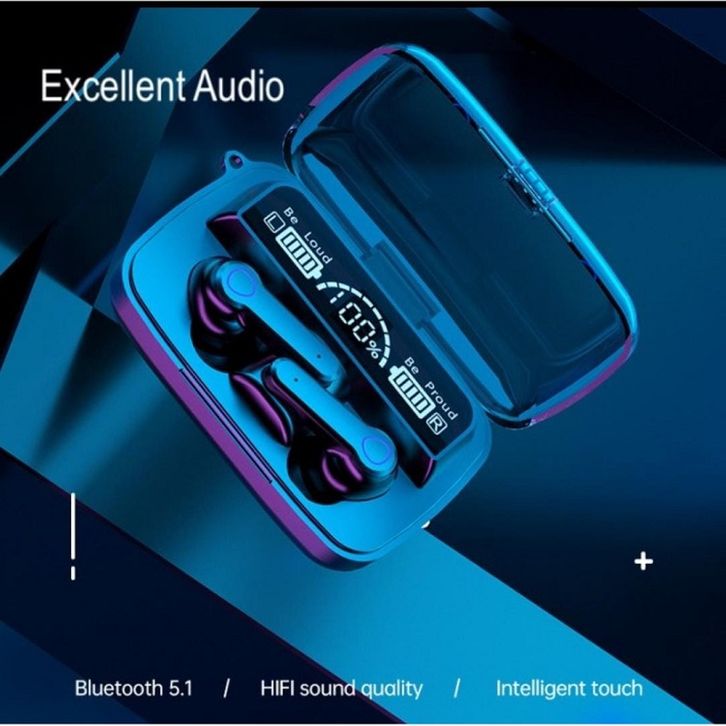 M19 Headset Bluetooth 5.3 Earbud TWS Nirkabel LED Digital Power Display Stereo with Powerbank