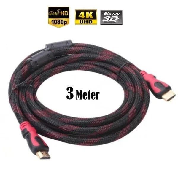 Kabel HDMI To HDMI 3 Meter 3M High Speed Full HD Serat Jaring Merah