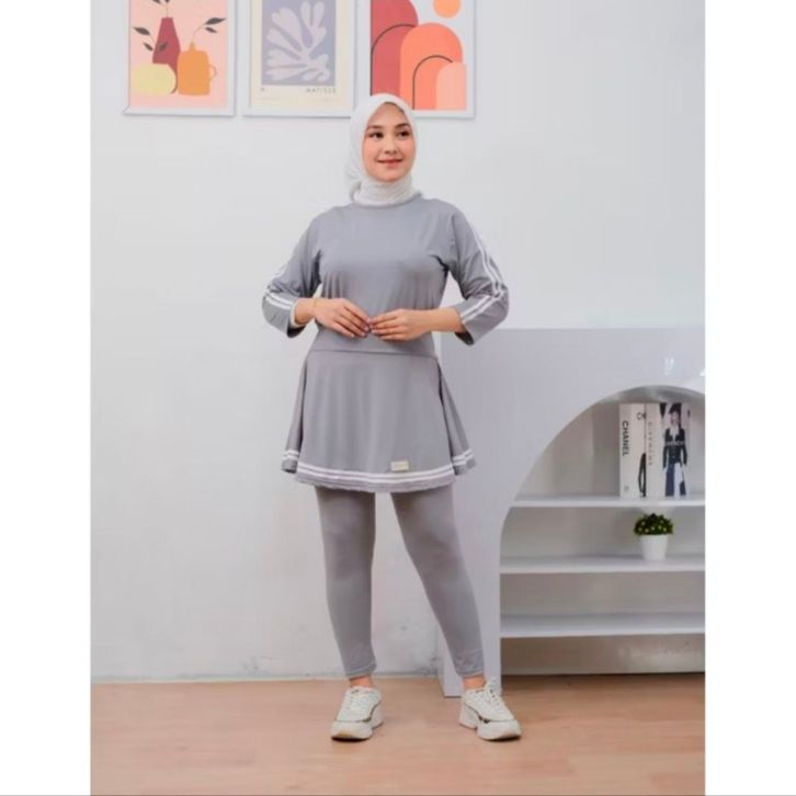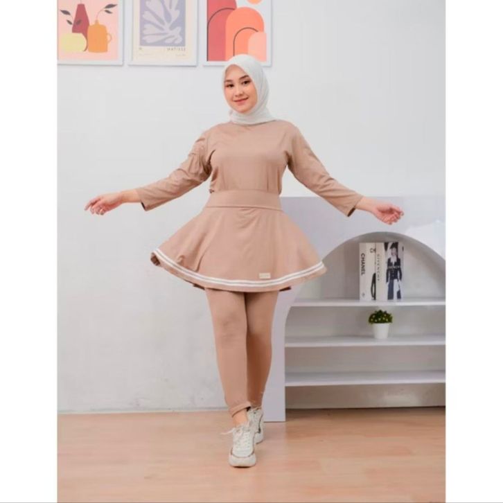 PROMO Setelan Baju Olahraga Wanita Muslim Terbaru Leging Rok Skirt Perempuan Sport Badminton Senam Lari Renang Berseped