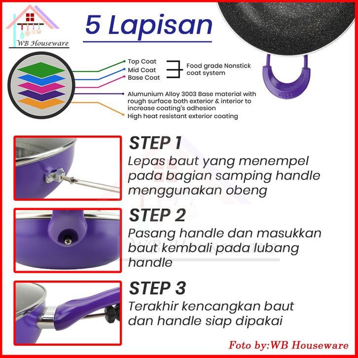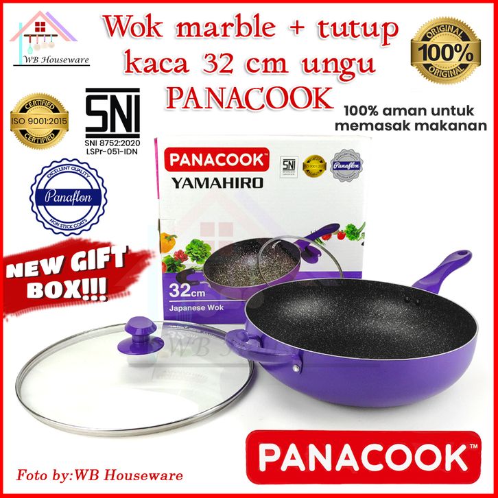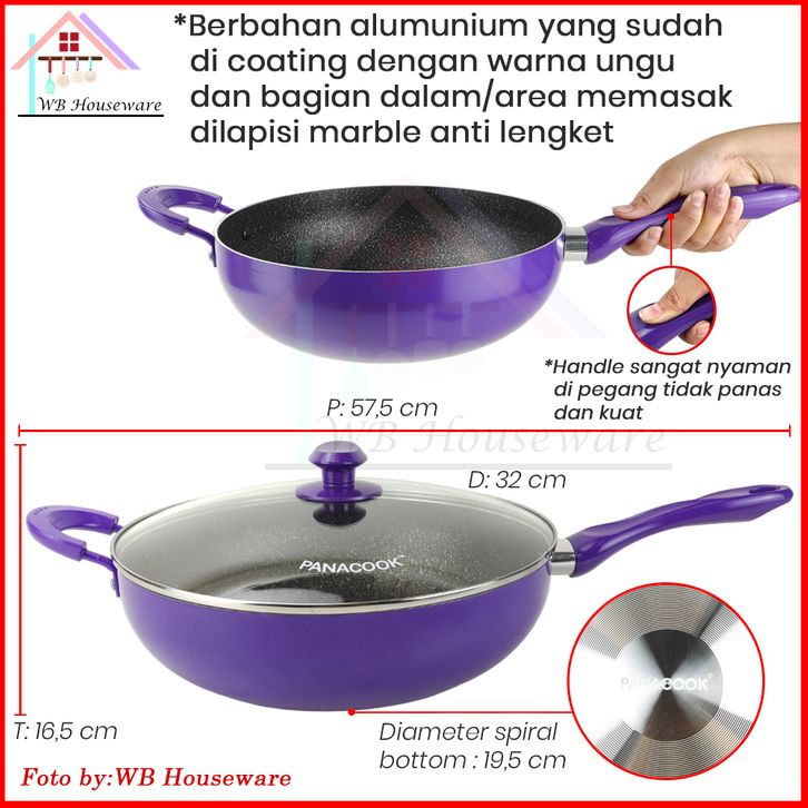 panci penggorengan / wok tutup kaca 32cm / japanese wok / wok marble 32cm PANACOOK - ungu