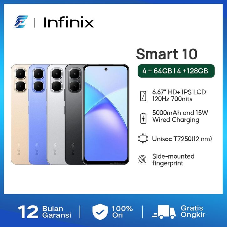 [Mall] Hp Infinix Smart 10 4/128GB Up to 8GB Extended RAM 6.67 inch 120Hz HD+ T7250 5000 mAh