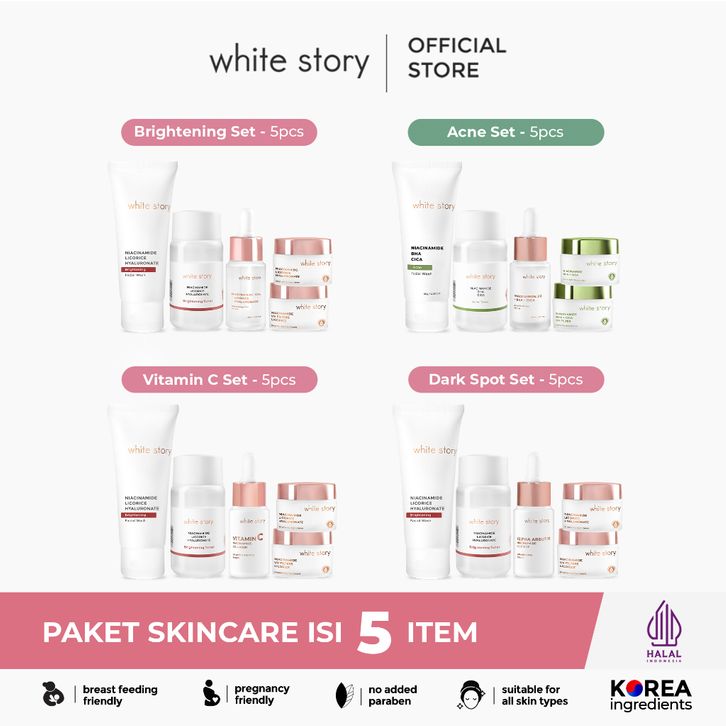 Paket Wajah Brightening, Acne, Dark Spot, Vitamin C - 5in1 White Story Best-Selling Package