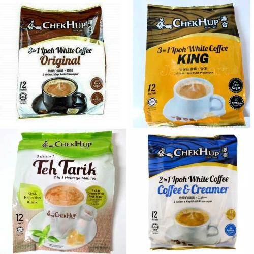 Minuman Seduh Chekhup Kokoo Chocolate Hazelnut Ipoh White Coffee Rich Original Less Sweet Creamer, Teh Tarik, Club House