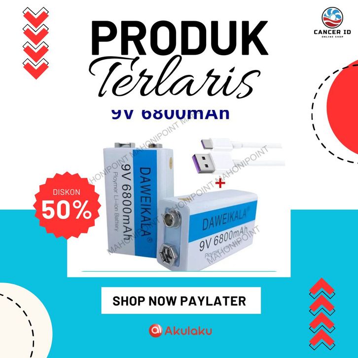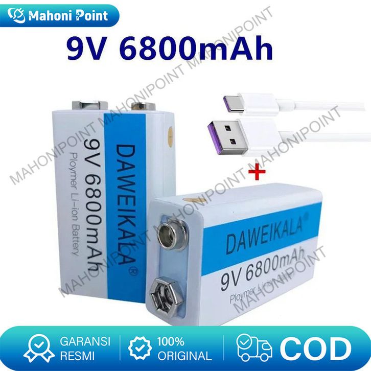 Baterai Cas Isi Ulang 9V Rechargeable Li-ion USB Type-C 6800 mAh D 9V