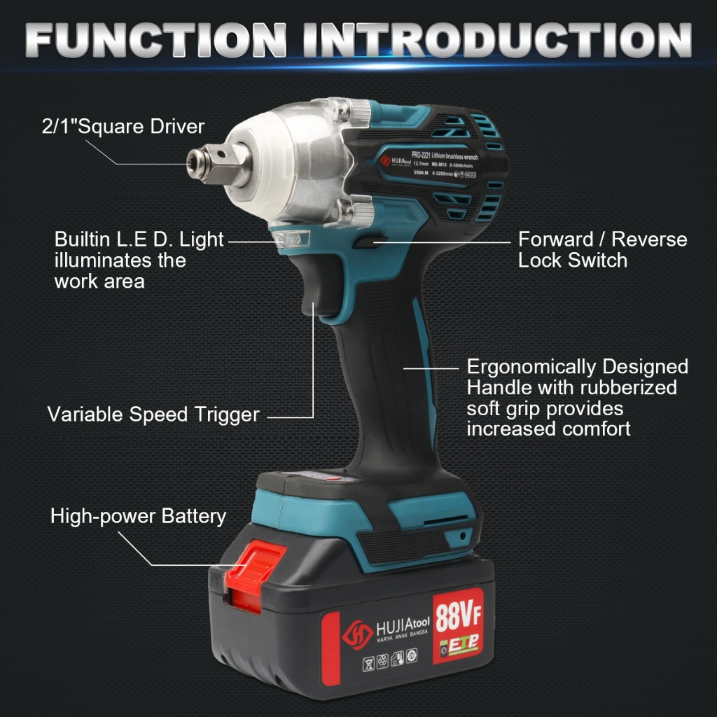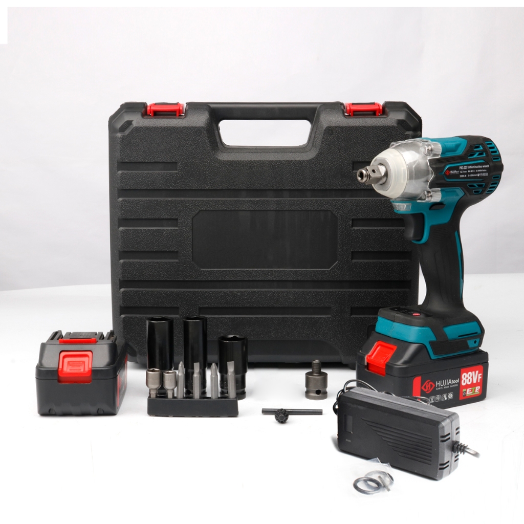 HUJIA 600NM BRUSHLESS MESIN BOR IMPACT BATERAI 88VF CORDLESS IMPACT WRENCH 13MM IMPACT 2BATERAI SET
