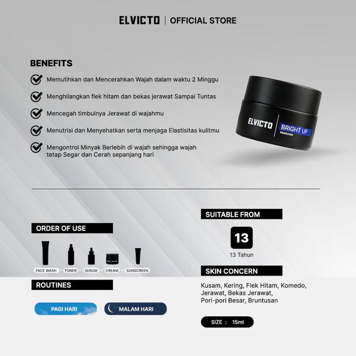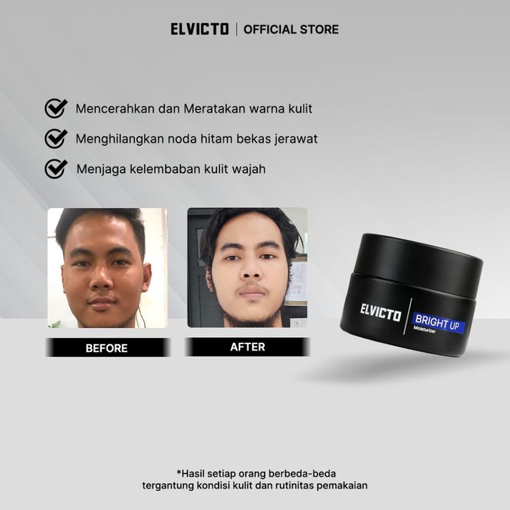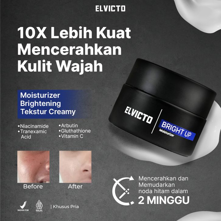 ELVICTO BRIGHT UP MOISTURIZER | Pelembap Wajah Pria, Perawatan untuk Mencerahkan Wajah, Mengurangi Noda Hitam | Mengand
