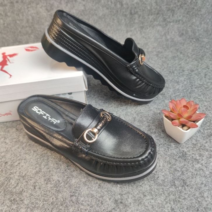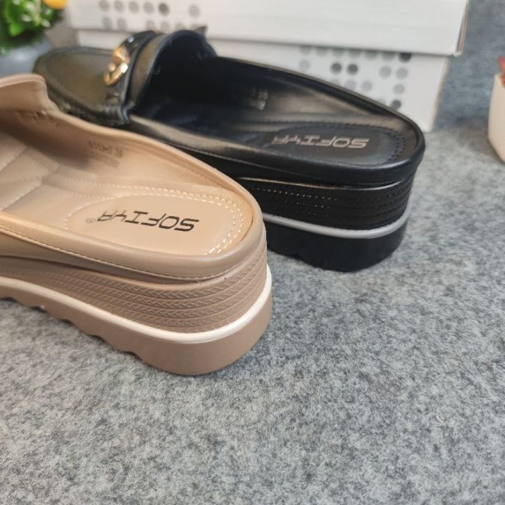 BISA SOFIYA ORI 8113 3 BUSTONG WEDGES WANITA IMPORT/IMPOR / SEPATU BUSTONG SLOP IN WANITA TINGGI HAK 5CM WEDGES